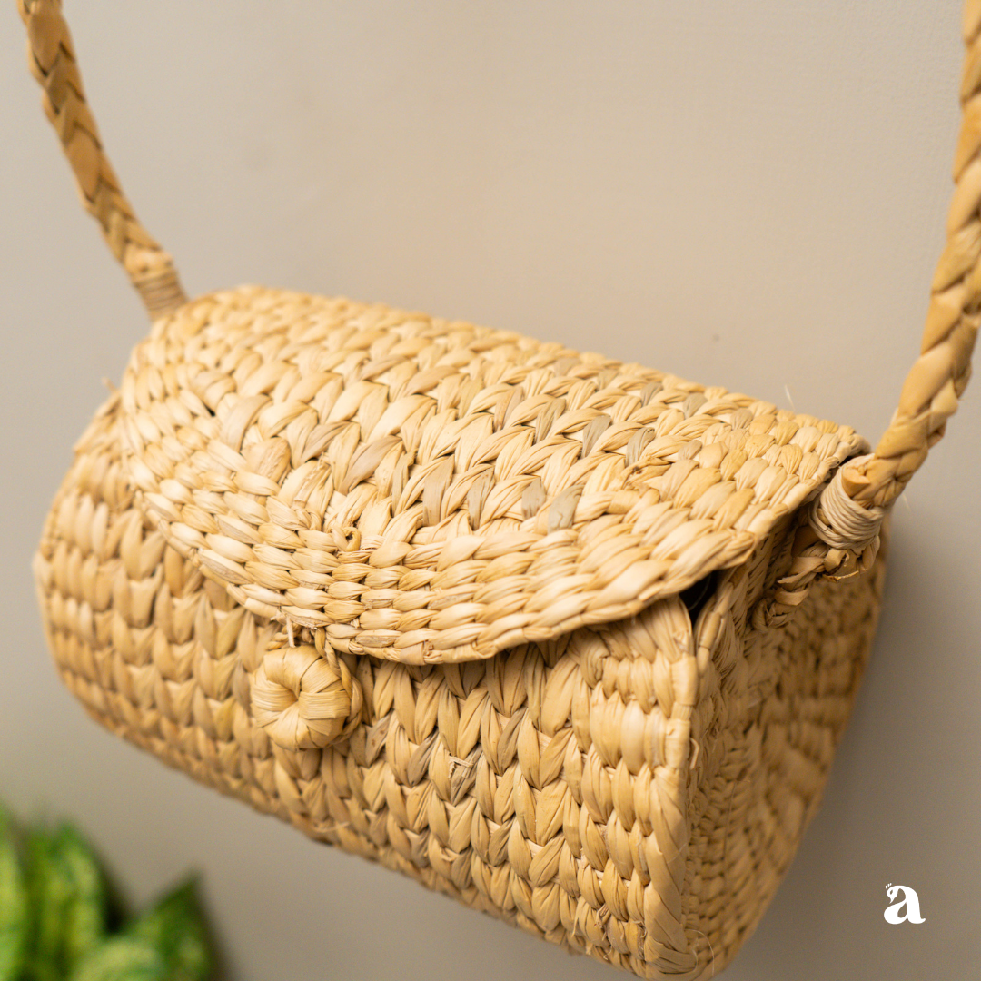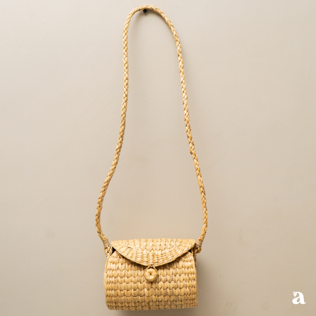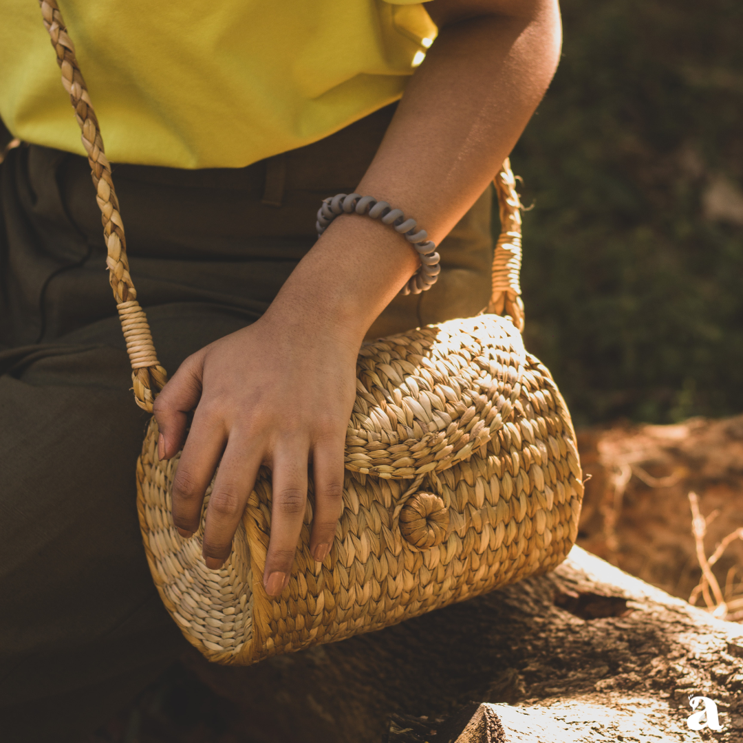 Discover the essence of indigenous craftsmanship with our Ena Handbag, a unique and stylish cylinder-shaped bag handmade with care in Manipur. Crafted from Kauna grass, a natural and sustainable material native to the region, this handbag embodies the rich cultural heritage and artistry of Manipuri artisans.