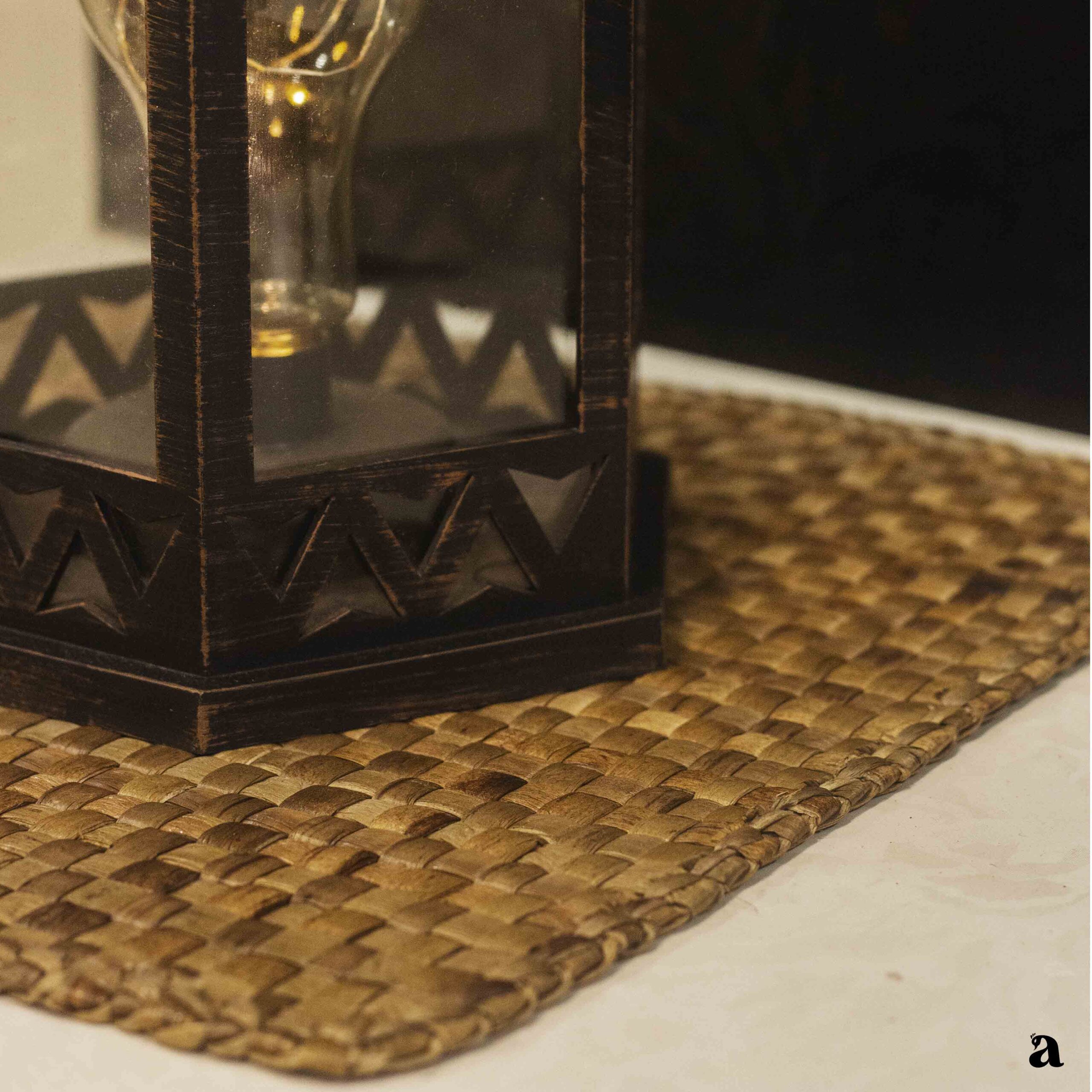 - The handwoven craftsmanship by skilled artisans ensures not only a visually appealing accessory but also a product of exceptional quality. The meticulous attention to detail adds an artisanal touch, transforming a simple mat into a work of functional art.